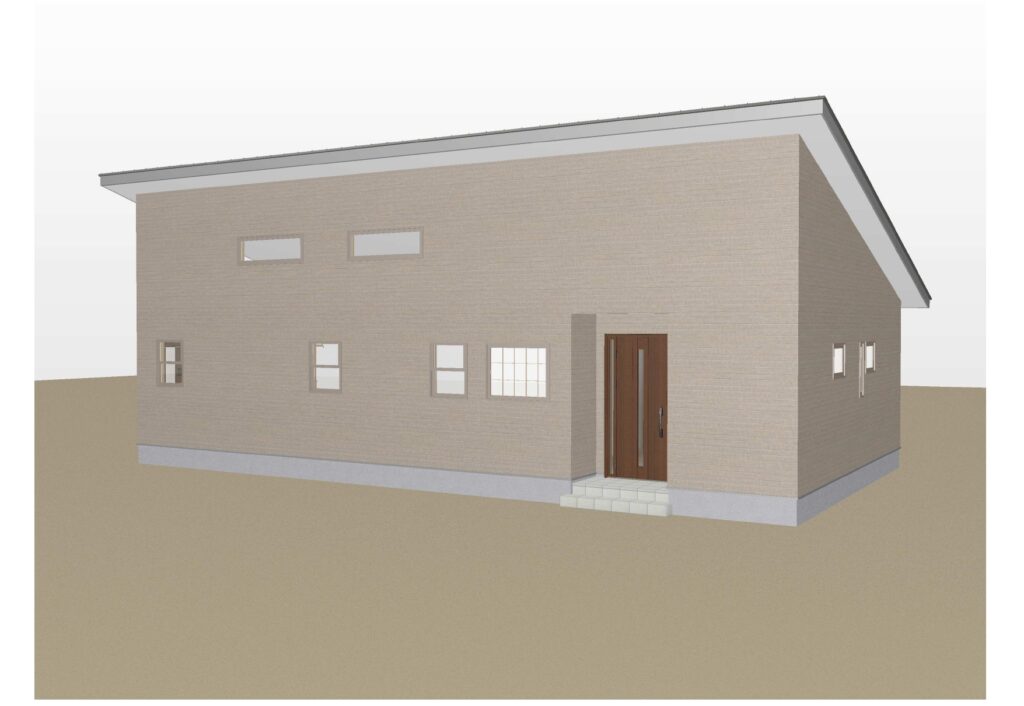 平屋建て延床面積29.5坪。(リビングダイニングの上部6.5坪分は吹抜勾配天井)